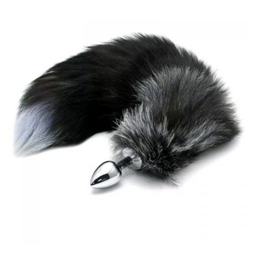 Soy el plug con cola de color negro y blanco que te encantará. Mi textura suave y sedosa es perfecta para acariciar con delicadeza, y mi colita decora tu cuerpo. Mi plug es metálico y suave, con punta redondeada para que sea más fácil meterme y sacarme.