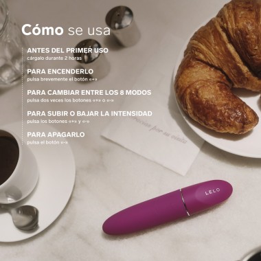 Soy Mia 3, la nueva versión del vibrador más pequeño y discreto de LELO. Con un diseño que te recuerda al de un pintalabios compacto y discreto permitiendote llevarme contigo vayas donde vayas para lo que pueda surgir. Mi punta moldeada está hecha específicamente para centrarme en tu clítoris y brindarte los orgasmos más rápidos e intensos que jamás imaginaste. Tengo 8 potentes modos de vibración y 12 intensidades que van de toques suaves a pulsos muy excitantes. ¿Estás preparada para que te lean los labios?