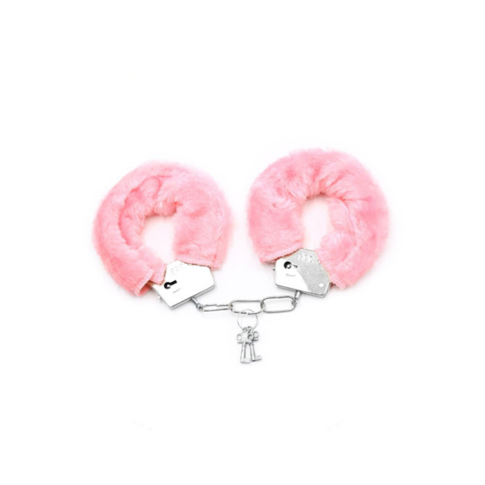 Somos las esposas de peluche suave rosas, donde contrastan lo mejor de ambos mundos. Por un lado, mi metal resistente y duro se asegura de mantener tus manos sujetas sin apretar demasiado. Mientras tanto, mi suave peluche acaricia tu piel brindándote sensaciones opuestas.